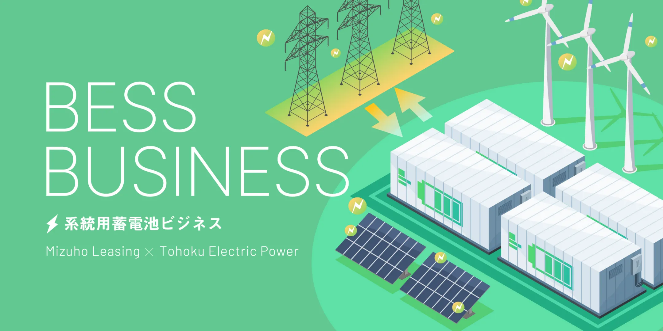 みずほリースは、再生可能エネルギーの導入拡大と電力需給の安定化に寄与するため、東北電力株式会社との共同事業による「系統用蓄電池事業」を推進しています 。両社は共同出資により「坂東蓄電所1号合同会社」を設立しました 。本事業では、東北電力さまの高度な市場運用ノウハウと、みずほリースが培ってきた事業組成およびアセット管理の知見を融合させています 。太陽光発電などによる電力の余剰分を蓄電池に一時的に貯蔵し、需給が逼迫する時間帯に供給することで、電力系統の安定化と再エネの有効活用という社会課題の解決を図っています 。